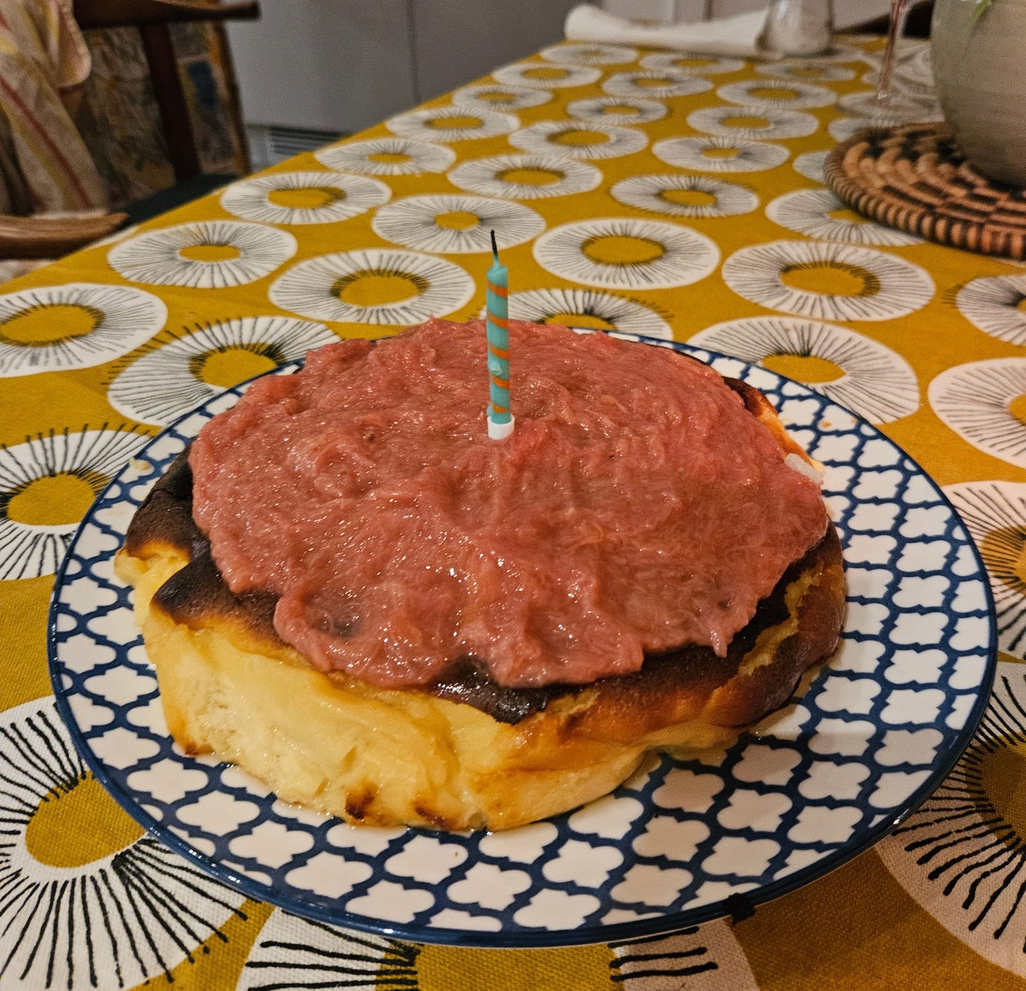 - My friend Jess and I continue to workshop our idea for a supper club. This has been in development since we met. Many things have derailed this project (she gave birth, I went to law school) but we actually came up with a menu and made the first test run. We are doing an insane international fusion of all the cuisines that represent our international lives. Everything that we cooked was profoundly disastisfying and needed workshopping, except the Basque cheesecake with rhubarb compote, which was way easier than either of us expected, and also outstanding.