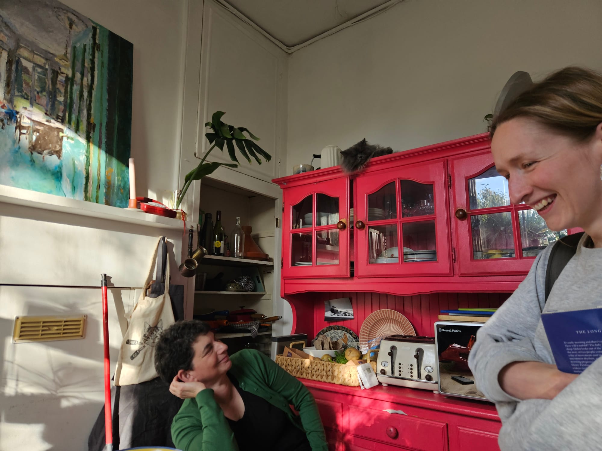 - Our new flatmate Beth and her friend put together a book of love sonnets set in London. The gimmick is that it's a flipbook and all the stanzas can be swapped out, leaving the reader to fit their own poem together. My friend/flatmate/former underling Sam and I went to the book launch at Pelican Pub in Peckham. It's a single rectangular room and looks very little like a traditional British boozer: more of a cozy DIY community space with concrete walls, ramshackle mismatched armchairs and wooden benches, and rotating art shows on the walls. Sam and I had a very funny moment where we discovered in situ what we liked so much about the place; namely, the acoustic panelling, gentle lighting, and lack of choice of beer made it very friendly for overstimulated people like ourselves somewhere north of "abnormal" on the neurodivergent spectrum. The launch was structured like a poetry reading, with Beth's friends coming up to read their own work interspersed with selected creations from the book. I read one out to be a good sport. Some of the better community poetry included a long series of couplets from a disabled woman to her old wheelchair. Some of the worse examples were from a white man in a rugby polo who resembled an overinflated Doug (from the cartoon Doug) who delivered three airless minutes of freestyle rap about his ex. Sam and I were seated on a sofa facing the audience, and not an eye strayed stageward. All were cast towards the concrete floor or the acoustic panelling on the ceiling. It was bad. The poetry book was good.