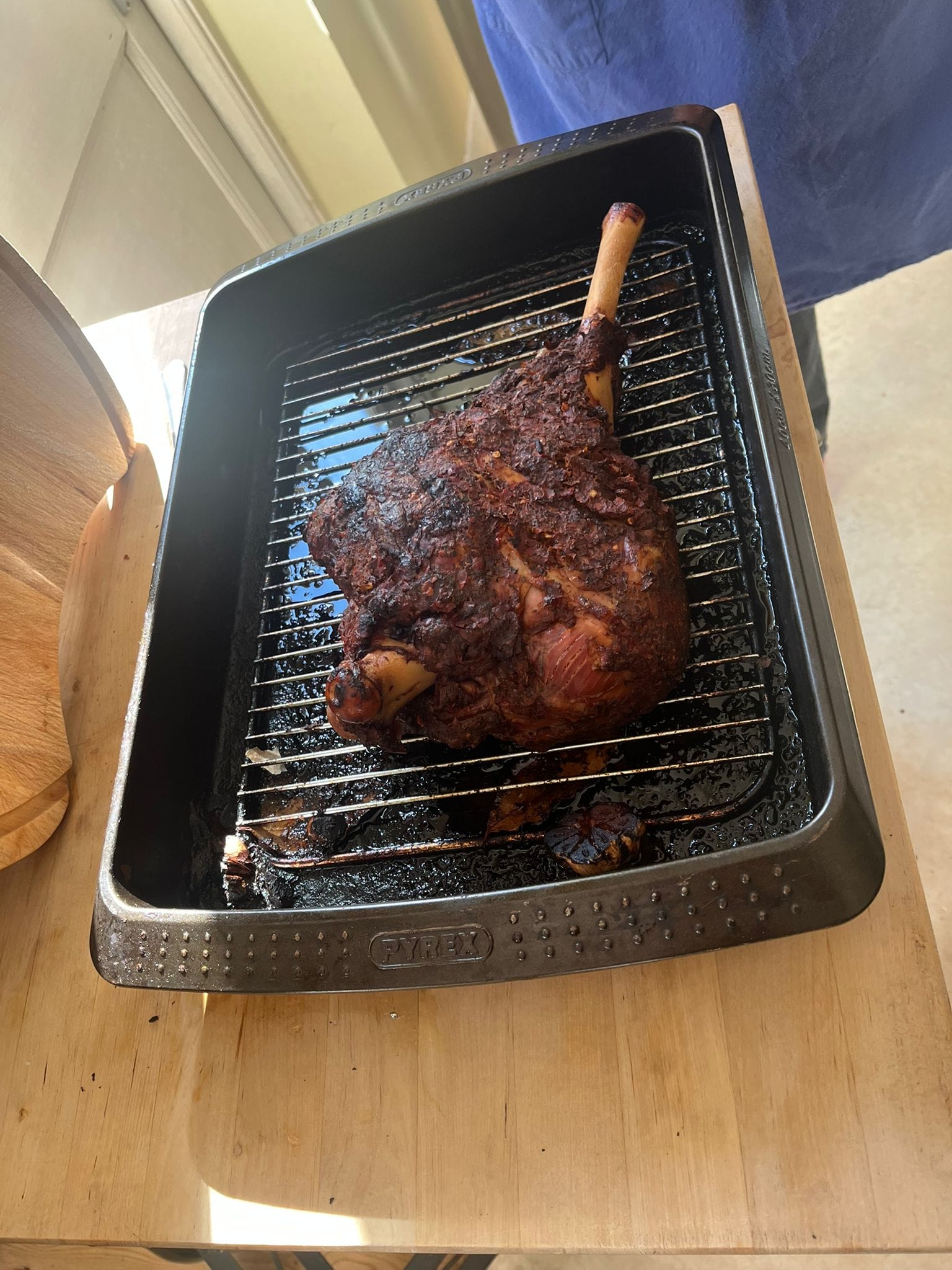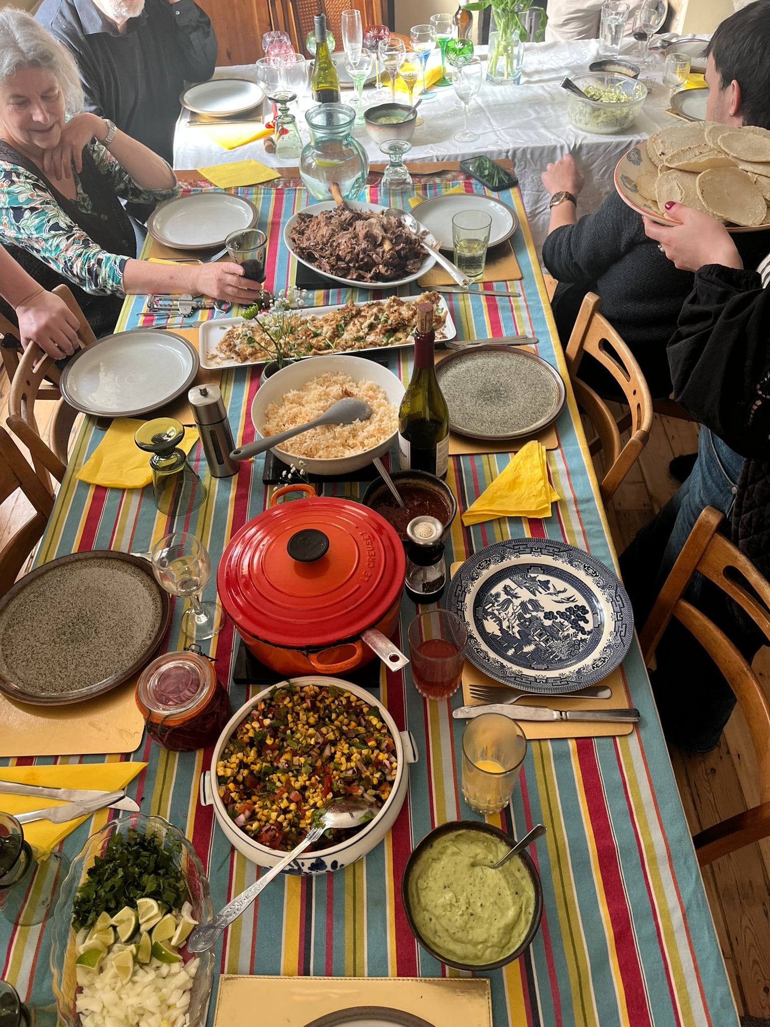 c. Easter - rather than have another roast lamb and saddling Joe with the work, I promised Easter tacos, and made lamb barbacoa and blackened fish. I'd never made barbacoa before and was intensely nervous. It was very rewarding to pull the lamb out of the roasting dish, unwrap the many layers of foil and parchment paper, and see how easily it fell off the bone. Caroline gets all of the credit here for purchasing the lamb (and wine, and sides, etc) and for hosting (in b and c) in the above anecdotes.
