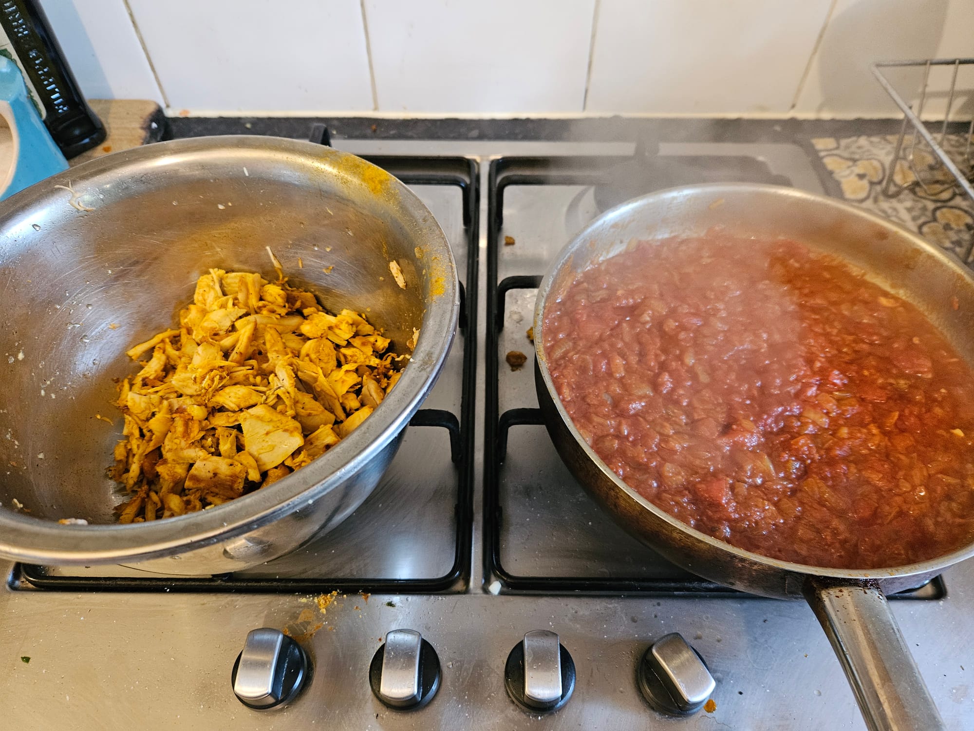 As I said at the outset, neither dish has a standard recipe. I read uncountable recipes from both India and the UK, and watched videos of chefs from all over the world preparing each dish. None of them have anything in common.