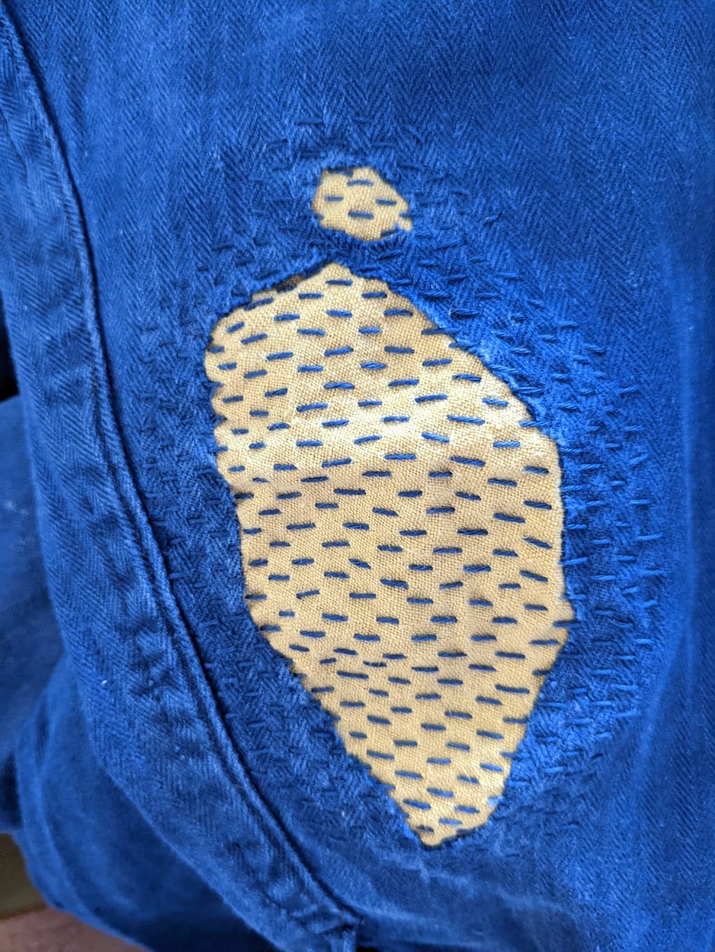 My good friend Jess repaired the elbow of my blue chore jacket with a stitching technique called sashiko as a birthday present, and it is extremely cool: